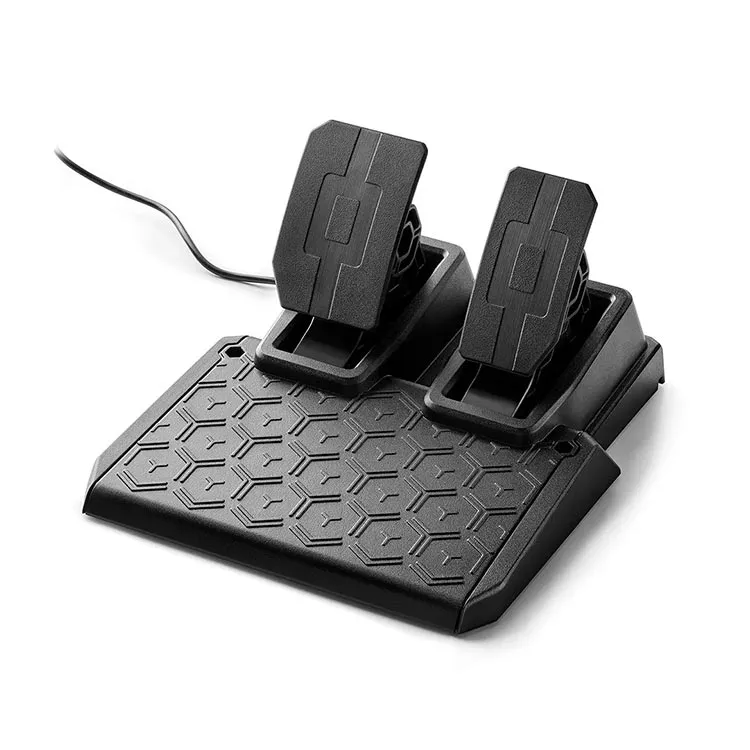 این فرمان بازی با ست پدال Thrustmaster T2PM عرضه میشود که شامل دو پدال مغناطیسی با دقتی فوقالعاده بالا برای شتاب سریع و ترمز به موقع است. این پدالها بر خلاف محصولات مشابه، حرکتی بسیار روان بدون افت دقت دارند و با استفاده از پتانسیومتر، قدرت و اتکایی فوقالعاده را به شما به عنوان یک راننده ارائه میکنند.