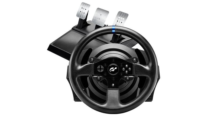 فرمان بازی تراست مستر Thrustmaster T300RS GT Edition با قطر 28 سانتی متری خودش میتواند برای عاشقانه سری بازیهای Gran Turismo یک تجربه به یادماندنی را رقم بزند. روکش پلاستیکی مرغوب این فرمان در کنار 13 کلید فعال میتواند این محصول را متمایز از تمامی رقبایش جلوه دهد. هر کدام از این 13 کلید برای طرفداران بازیهای ریسینگ حکم شاه کلید را دارند که از قضا میتوانید از طریق اپلیکیشن خود شرکت سازنده عملکرد آنها را شخصی سازی کنید. 3 عدد پدال فلزی نیز در بسته بندی این محصول وجود دارد. طبعاً مثل سایر محصولات تراست مستر میزان شیب و حتی ارتفاع این پدالها به تناسب سلیقهتان قابل تنظیم است.